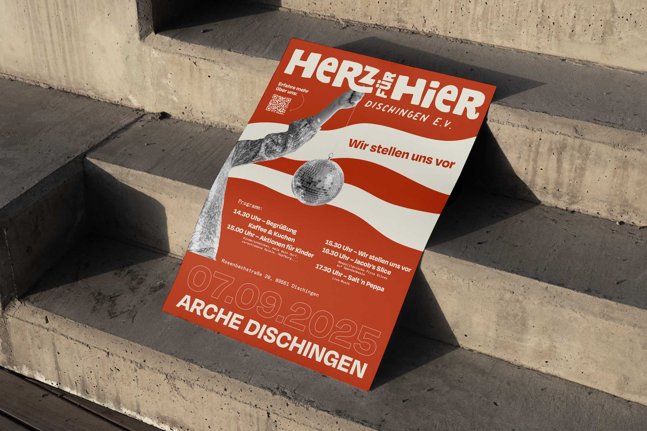 Das Branding für den gemeinnützigen Verein Herz für Hier Dischingen e.V. wird dominiert durch ein rot und beige, abgeleitet von den Farben des Wappen von Dischingen. Ergänzt durch Fotografien aus der Umgebung ergibt sich eine runde Gestaltung. Es folgten verschiedene Flyer und Plakate und die Webseite.