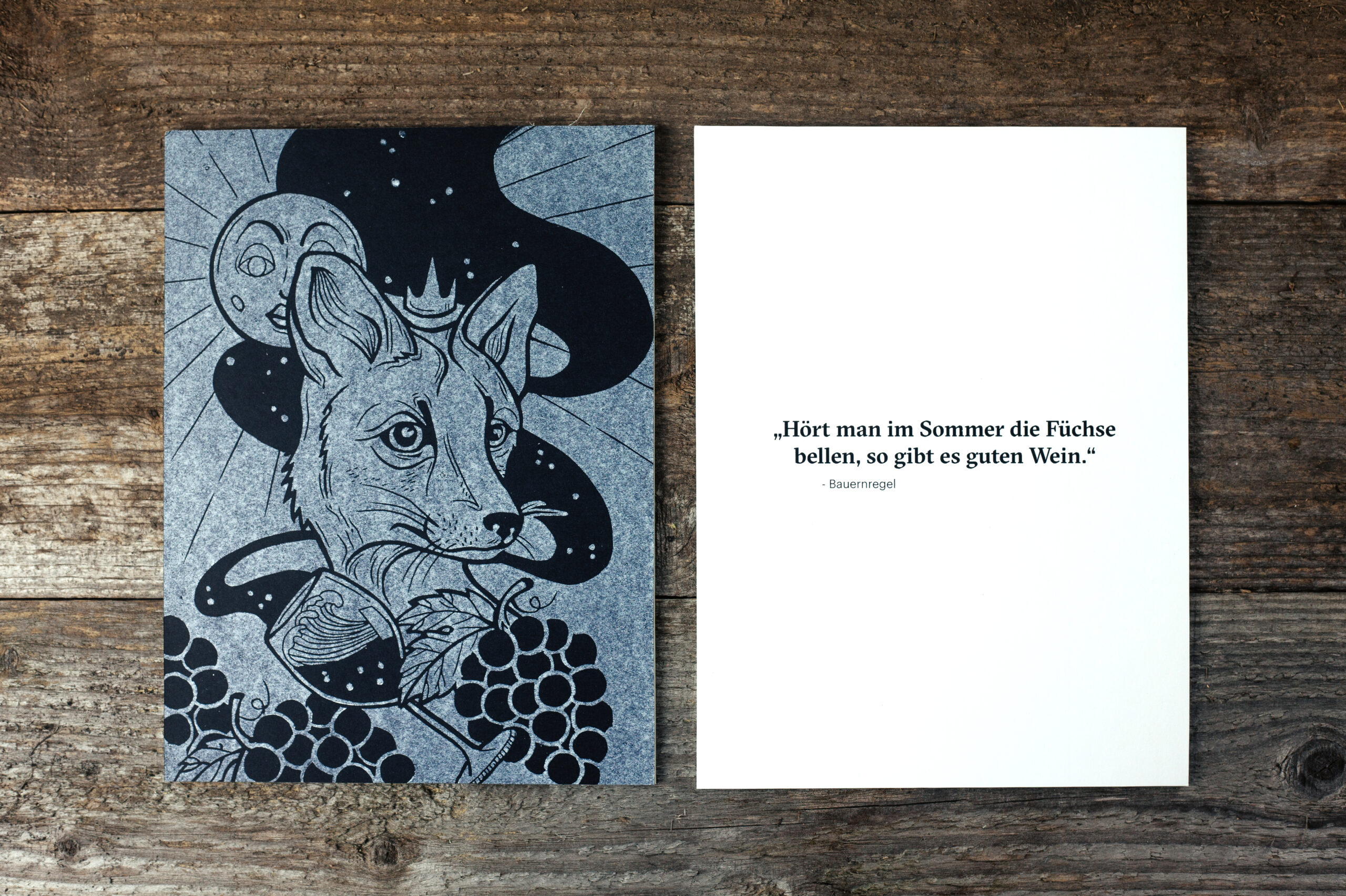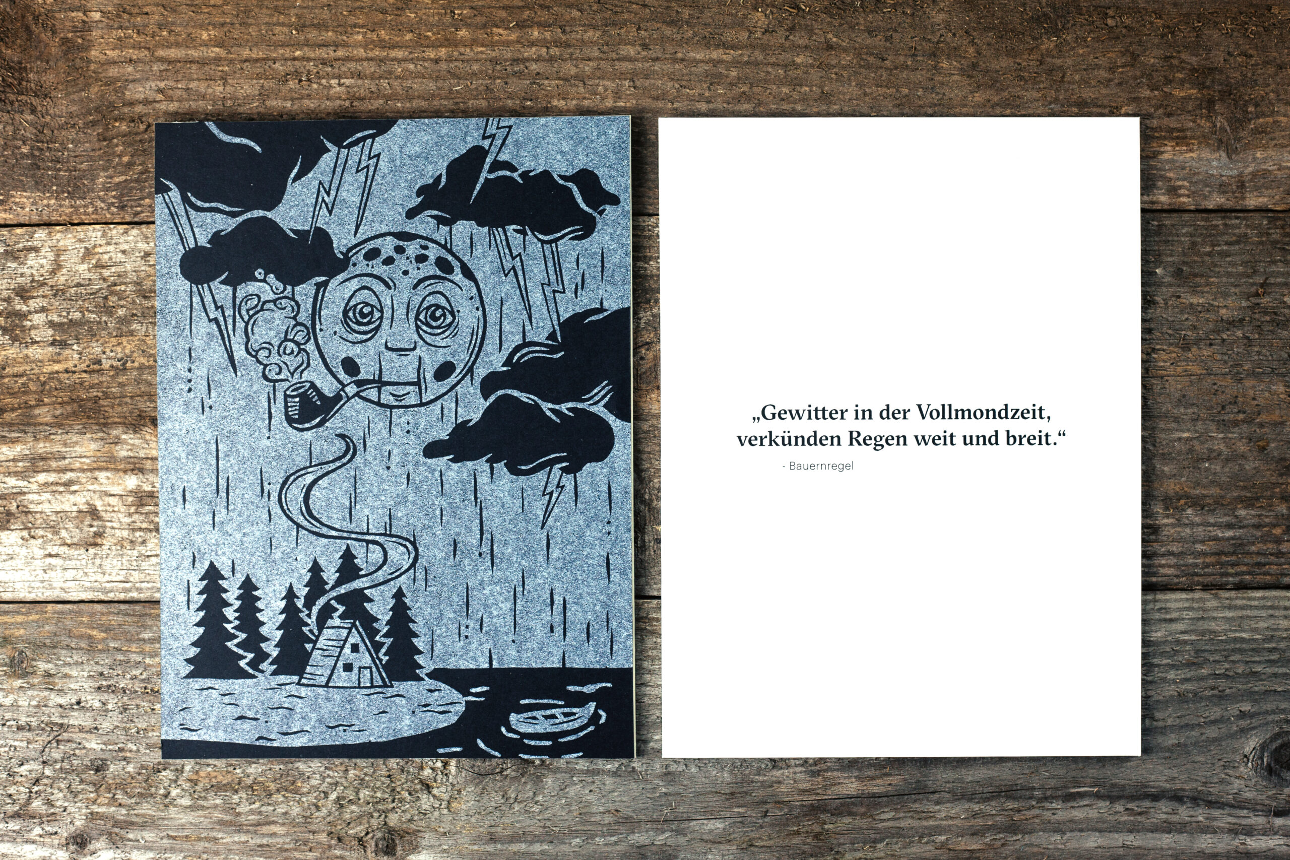 Bauernregeln / Illustrationen: Fünf, von Hand illustrierte Bauernregeln, als Linolschnitt umgesetzt.
